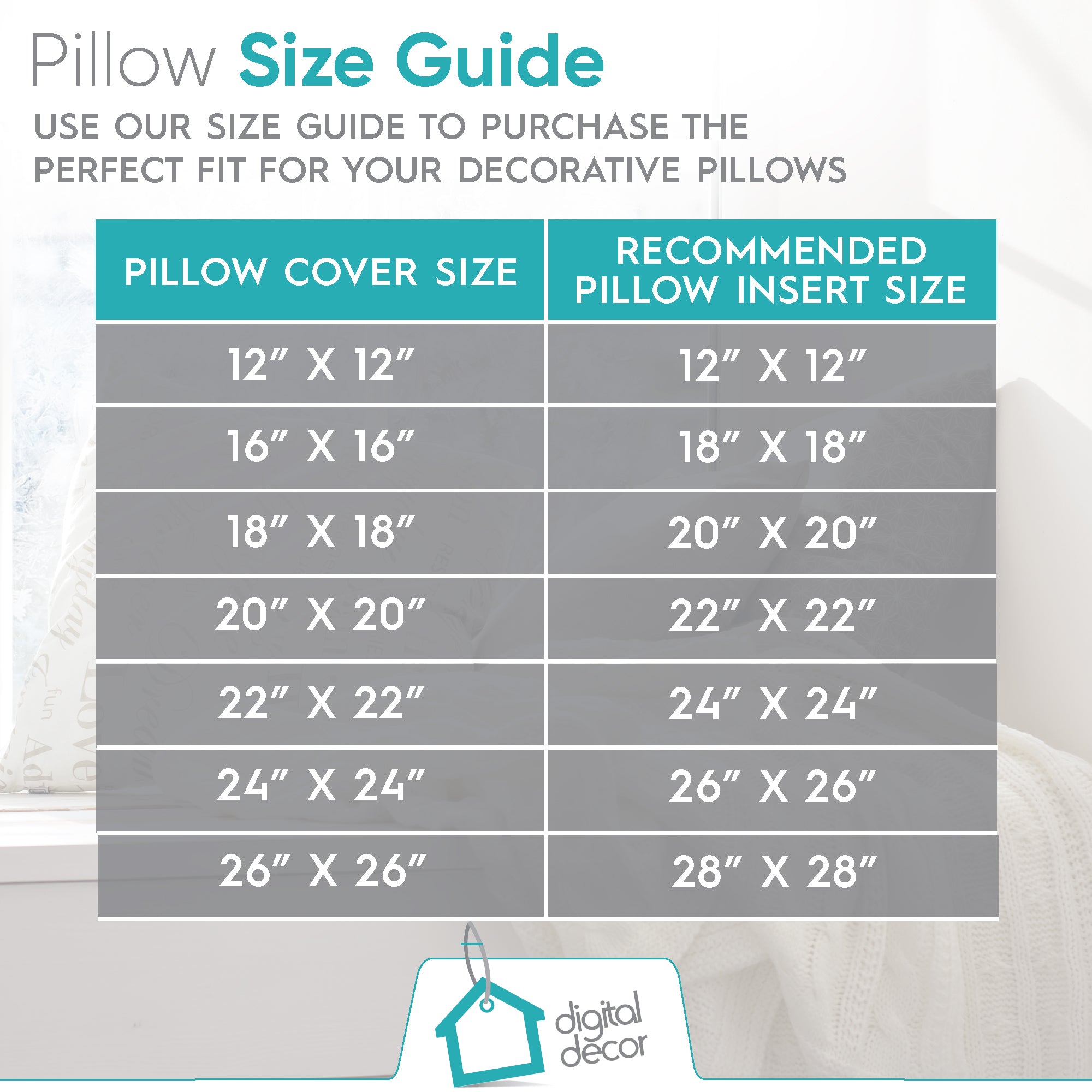 12 x 12, 18 x 18, 20 x 20, 22 x 22, 24 x 24, 26 x 26